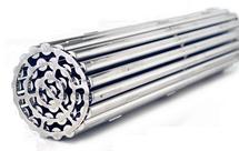 Nuclear reactor fuel contains ceramic pellets of uranium-235 inside of metal rods. Before these fuel rods are used, they are only slightly radioactive and may be handled without special shielding.